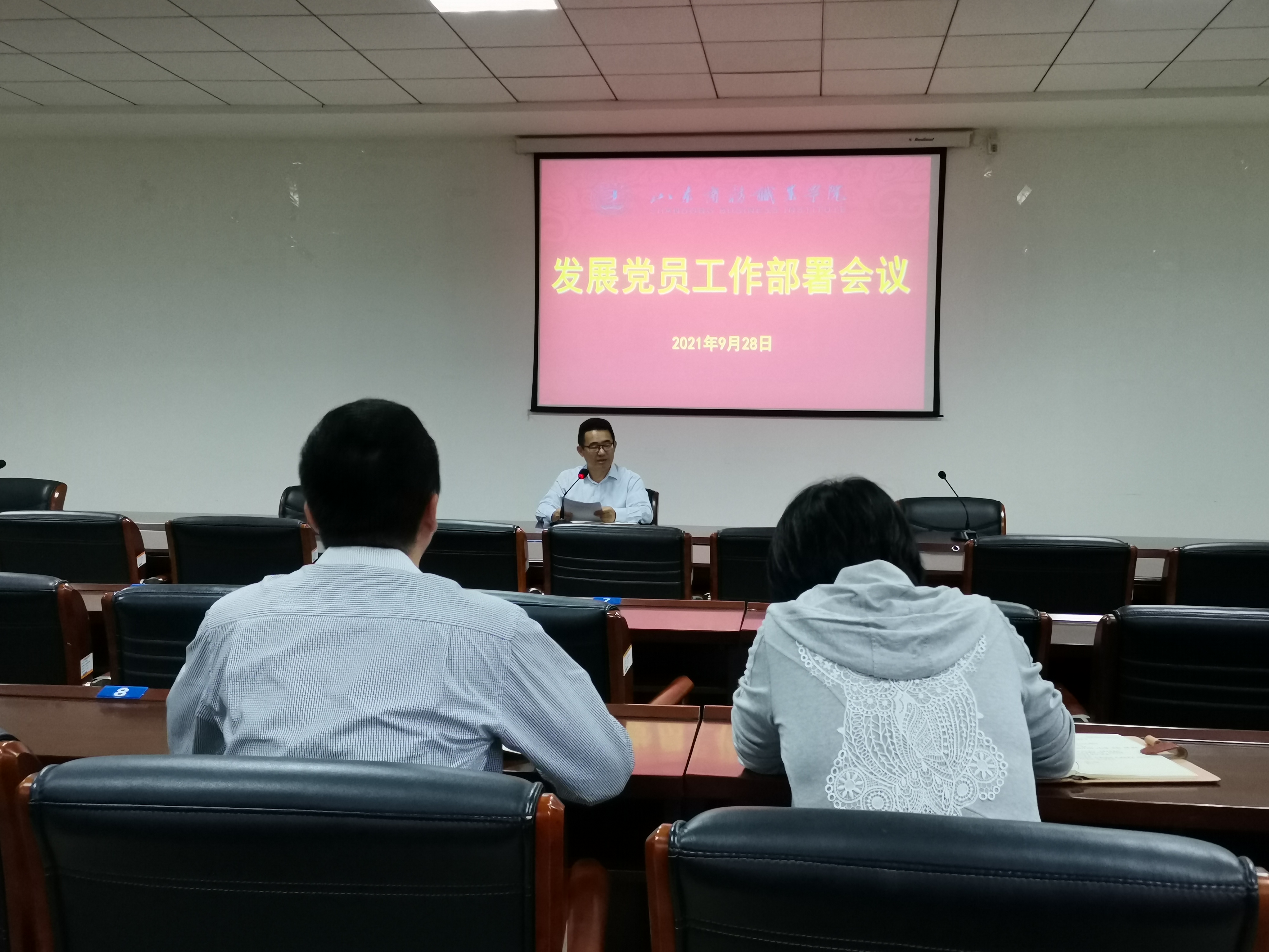 9月28日下午,我校在办公楼学习中心召开发展党员工作部署会议。组织人事处相关同志、学生党支部书记、灯塔系统管理员和各二级学院专职组织员参加了此次培训会。