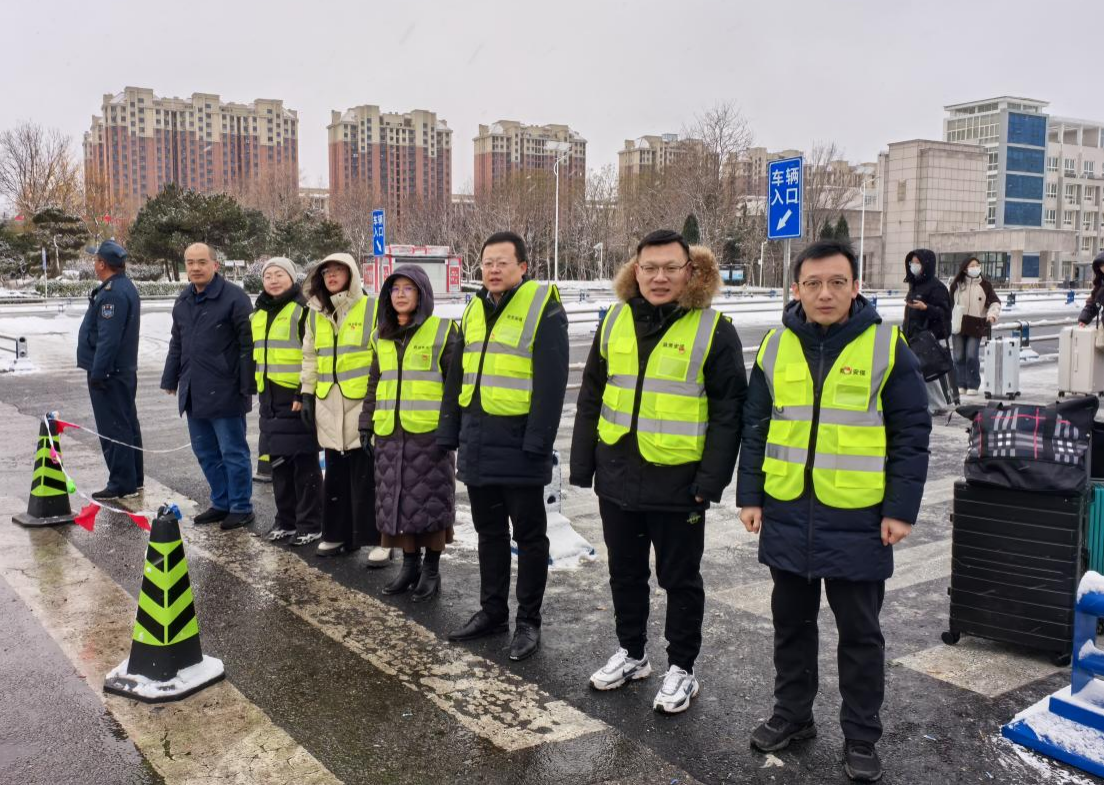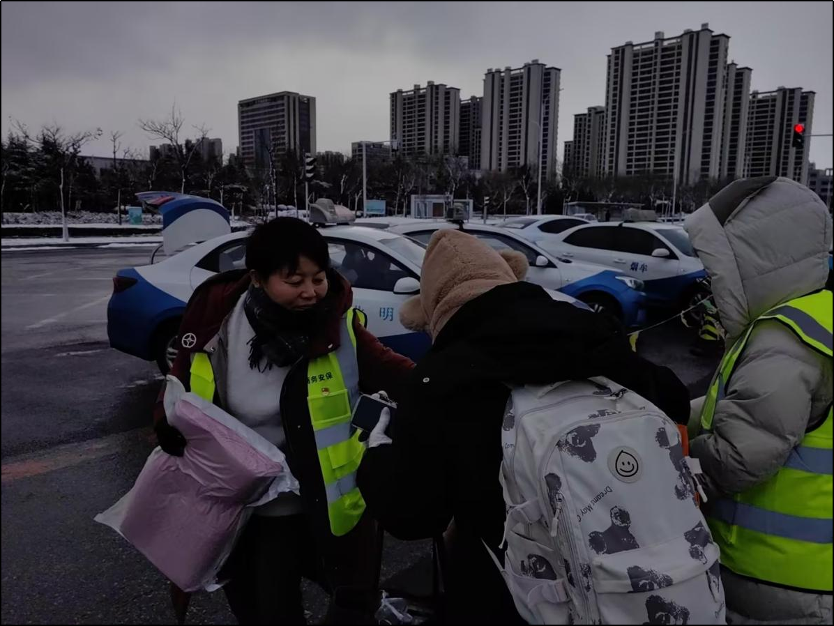 寒冬腊月,大雪纷飞,恶劣的天气下迎来了学生寒假返乡高峰,校门口异常拥堵。2025年1月7日—1月8日为了确保学生安全顺利返乡,度过一个温暖的假期,机关第四党支部积极响应,组织党员干部积极开展“我为师生办实事”活动,为师生带来实实在在的便利与服务。