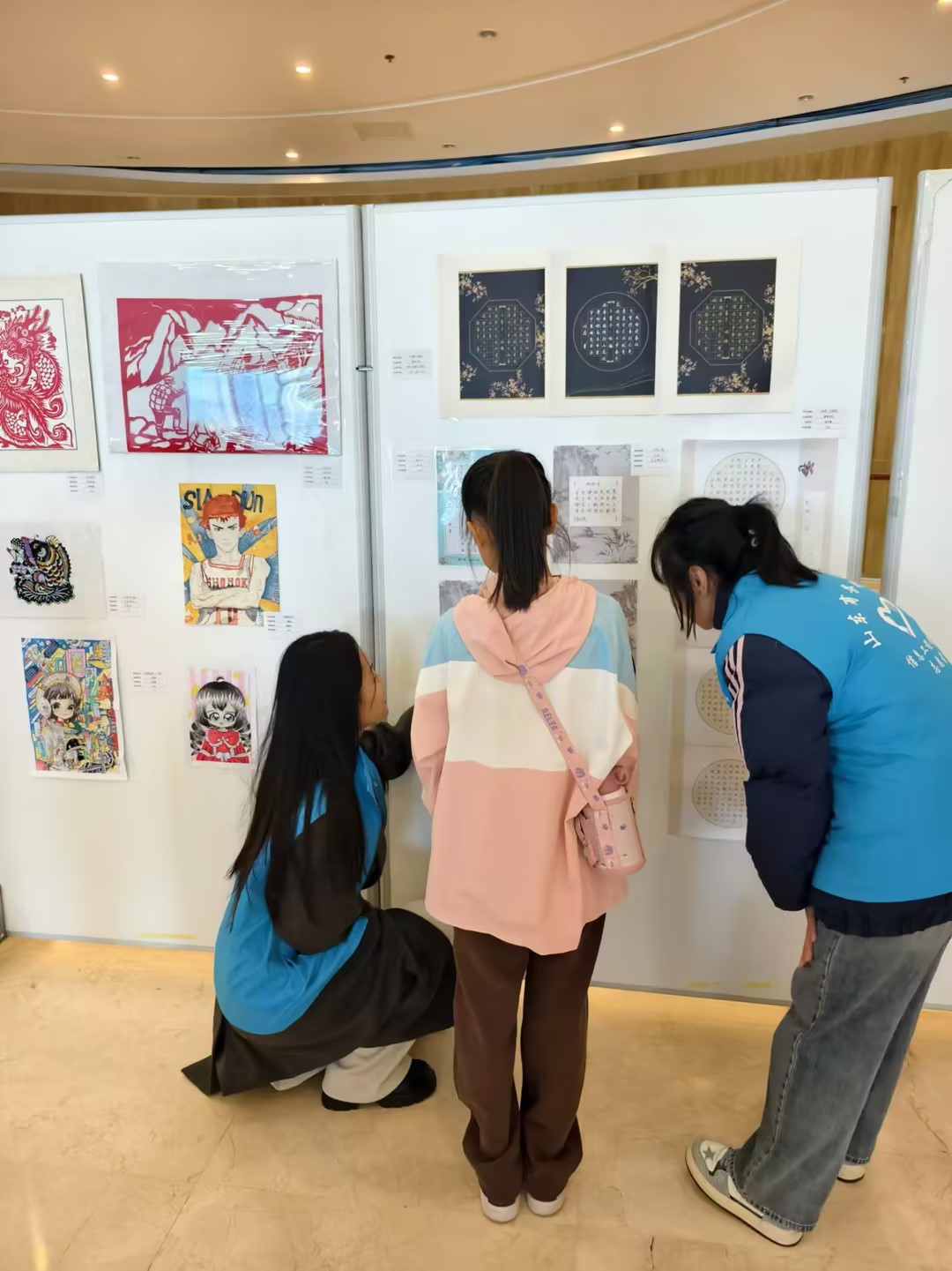 美在浸润,育在融合,本次展览由中共烟台市委宣传部、烟台市妇女联合会、烟台市文学艺术界联合会主办,中共莱山区委宣传部、胶东文化广场承办。旨在引导市民提高审美素养,激发家庭艺术活力,共建美育社区、文化社区。展出书画、非遗优秀作品61组,展览重在展示家庭美育宣传活动的阶段性成果,推动全民美育宣传活动走进家庭,信息工程学院“红船领航”党建宣讲团志愿者积极参与此次活动,辅助美育作品布置、现场讲解以及秩序维护工作。