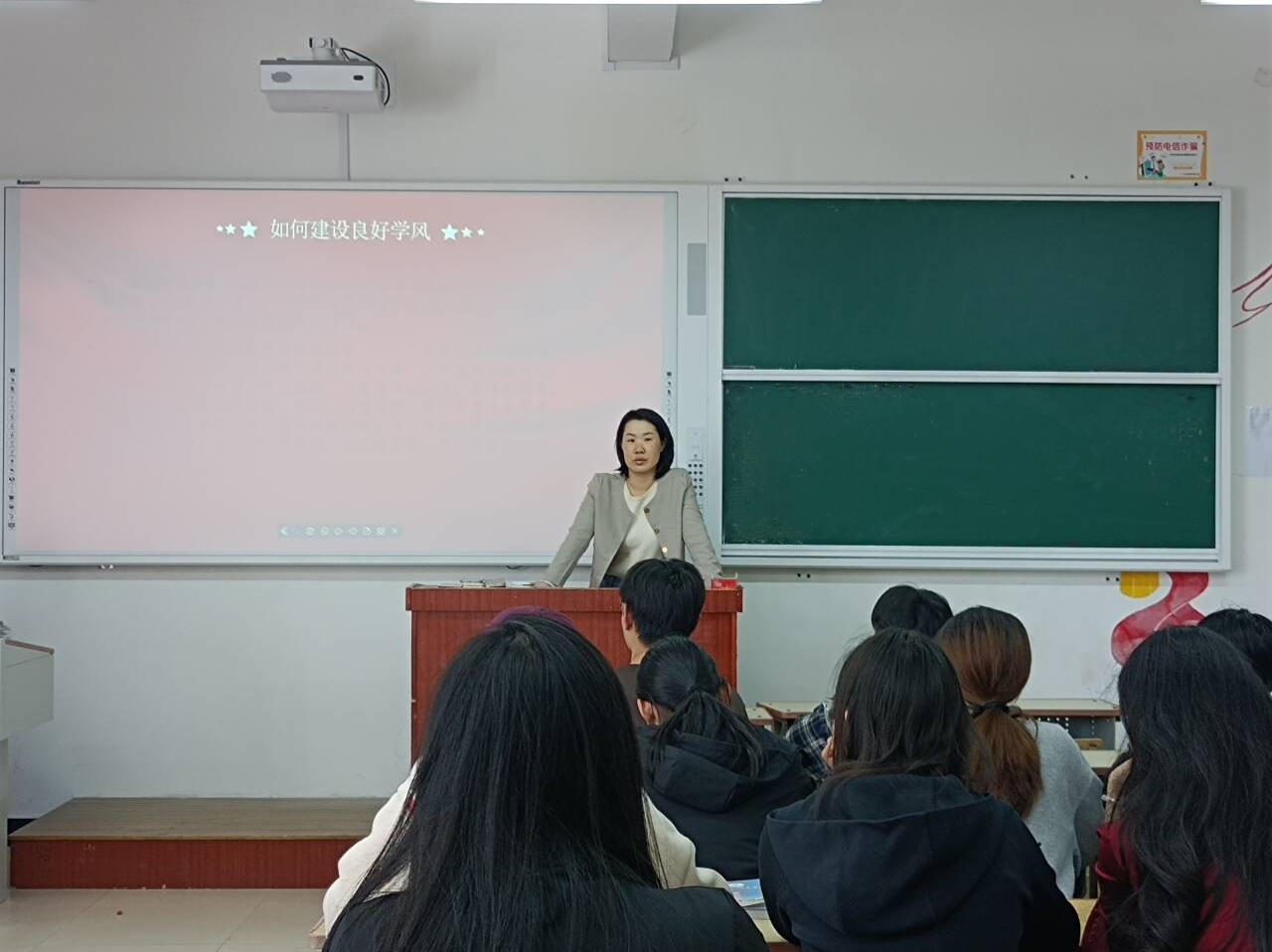 聚集“课堂、宿舍”两个阵地,营造优良学风环境。通过任课教师+教学秘书+辅导员班主任三方联动,每天公布课堂监督情况,帮助学生设立目标,增强学生“想学、好学、会学”的内力。加强宣传,通过推文、悬挂横幅等方式,做好氛围营造。辅导员班主任深入学生宿舍,与学生面对面交流,关心学生的身心健康,帮助学生解决学习和生活上的问题,鼓励他们养成良好的学习习惯,提升学生的行为养成和教育实效,强化学生规矩意识,助力学院学风建设工作。