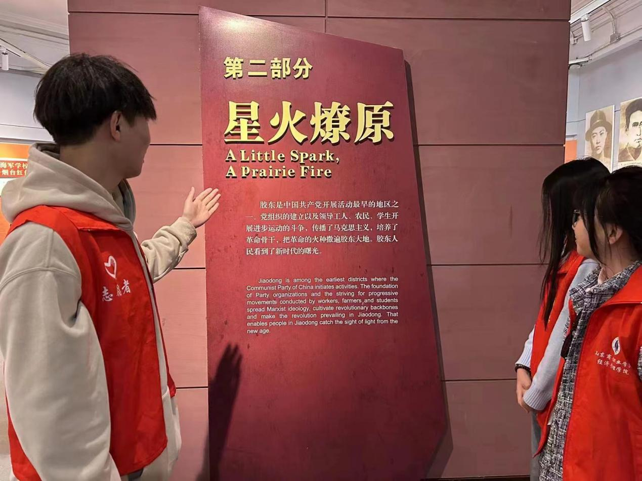 经济管理学院实践团来到烟台山抗日烈士纪念碑前,在一次次敬献鲜花、肃立默哀中感受缅怀英烈、学习英烈的浓厚氛围,深切寄托对烈士们的哀思。随后大家来到革命纪念馆继续开展红色教育之旅,以自己的所见所想所感开展红色宣讲,表达作为大学生要以先烈为镜,学习革命烈士们的精神伟刀与信仰光芒,继而在新时代凝聚磅礴力量、不断拼搏奋斗。