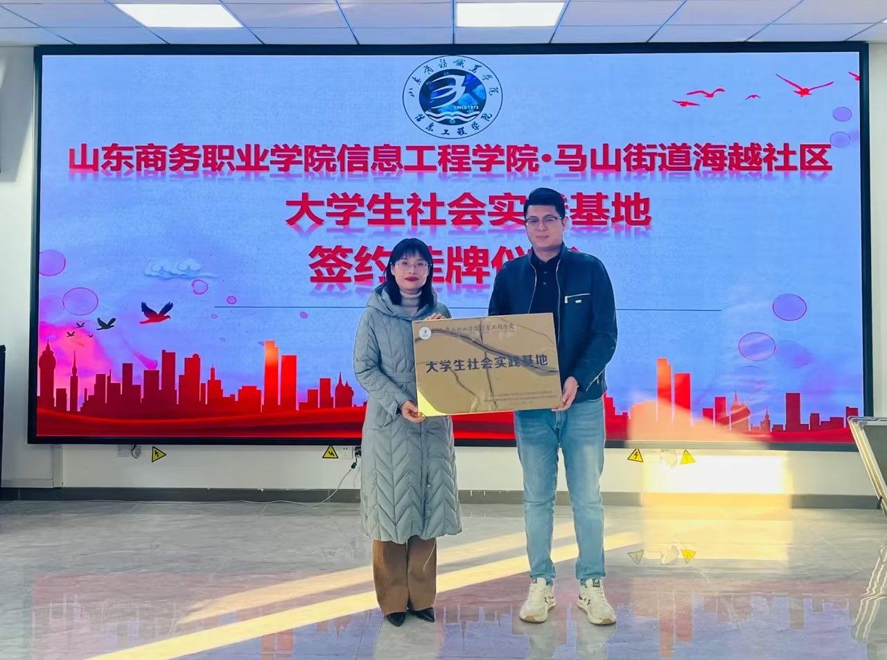凝聚青春力量,共建和谐社区。为深入贯彻团省委、省教育厅联合印发的《关于开展“百万大学生进社区”社会实践的工作方案》文件精神,进一步推进大学生社区实践计划工作走深走实,切实提升实践育人质量,在服务人民群众中展现新时代青年价值。12月13日,山东商务职业学院信息工程学院学生党支部与烟台高新技术产业开发区马山街道海越社区党总支联合举行“大学生社会实践基地”挂牌仪式。
