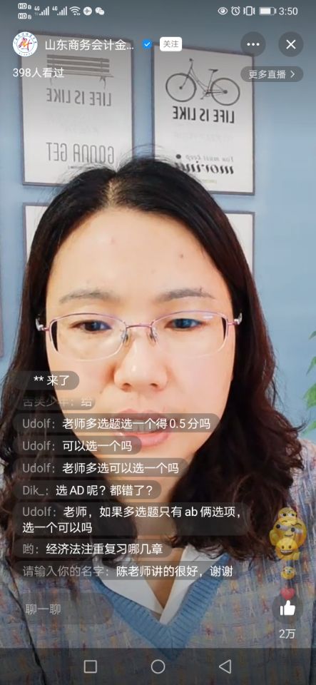 会计金融学院教师党支部为山东省党建工作样板支部、全国党建工作样板支部,近年来支部以“强化党建引领,夯实支部堡垒”为理念,充分发挥示范引领作用,培养出多位优秀党员及党务工作者。此次“初级会计职称考前加油站”为支部“党员办实事”系列活动之一,得到了同学们的热烈响应,短短一小时的直播时间获得了两万余次点赞。(张岗、王括、韩采宏)