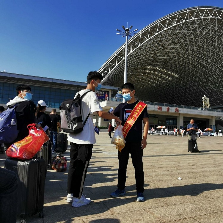车站接站小分队一大早就跟车出发了,兵分两路,分别前往汽车站、火车站。在烟台火车站、汽车站,教师党员和志愿者们早早的布置好等待区,设置好迎新牌子,等待新生到来。随着列车陆续驶入,一批又一批的学生进站,党员教师们有条不紊的指引着新生到达指定地点,为他们量体温,送他们上校车,主动帮助新生搬运行李,为学生和家长缓解旅途劳顿。一位来自菏泽的考生说,坐了11个小时的火车,一出站就看到了商务的大牌子,看到了商务的老师接站,心理暖暖的。