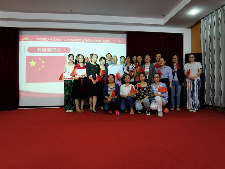 每名党员挥舞着手中的国旗,心中都洋溢着浓浓的爱国之情,歌唱《祝您生日快乐》《我和我的祖国》并由党员代表共切蛋糕,庆祝中华人民共和国成立70周年,共祝我们的祖国更加美好、更加繁荣、更加昌盛!