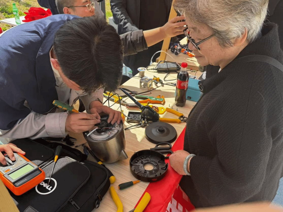 当天,由20余名师生组成的“维修志愿服务队”到达现场,在专业教师指导下,为居民提供小家电检测、故障维修及保养咨询等服务。活动还特别设置“家电安全知识科普角”,通过图文展板、现场演示等形式,向社区居民普及家电使用安全规范。一位大爷拿着修好的电水壶感慨:“这些孩子技术扎实、服务贴心,不愧是‘灯塔’培养的先锋队。”