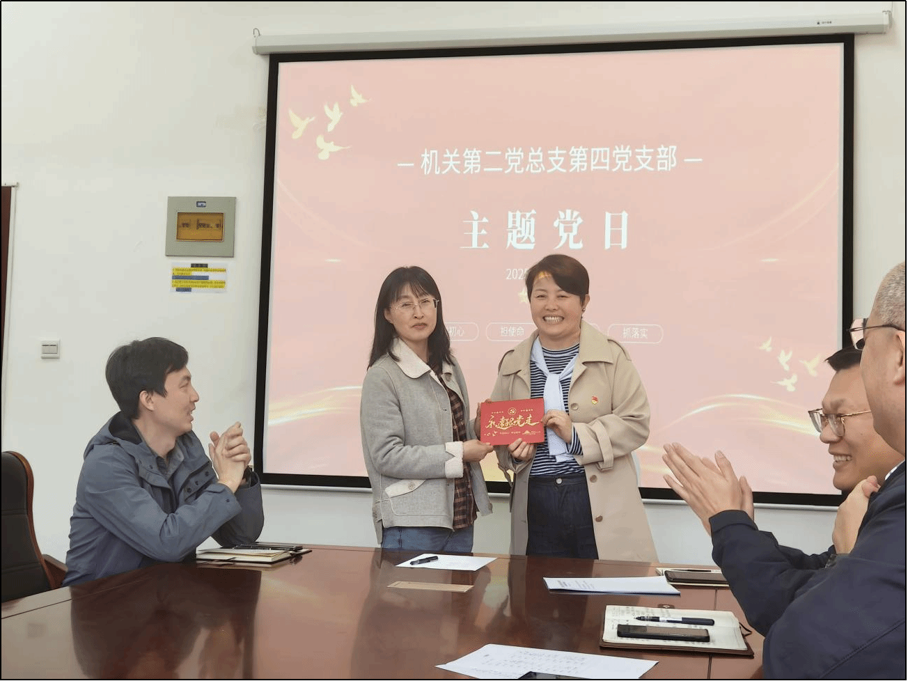 2025年4月28日,机关第二党总支第四党支部开展了一场别开生面的主题党日活动——为支部党员李苹苹同志举办了一场庄重而温馨的“政治生日”。此次活动以“重温入党初心,强化党性修养”为主线,通过仪式感与教育性相结合的形式,进一步增强党员的身份意识与责任担当,激励党员在新时代新征程中发挥先锋模范作用。