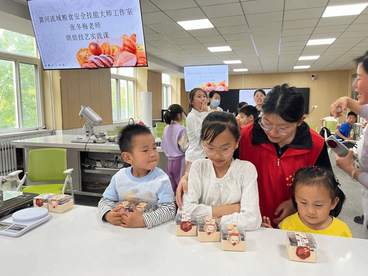 活动通过“小手拉大手”,将专业服务覆盖全年龄段。活动现场,党员教师不仅全程守护孩子们的操作安全,更通过“粮食从田间到餐桌的历程”进行微讲解,引导亲子家庭树立节约粮食、关注食品安全的意识。这种“教育一个孩子,带动一个家庭”的服务理念,正是学院深化社区共建的创新实践。