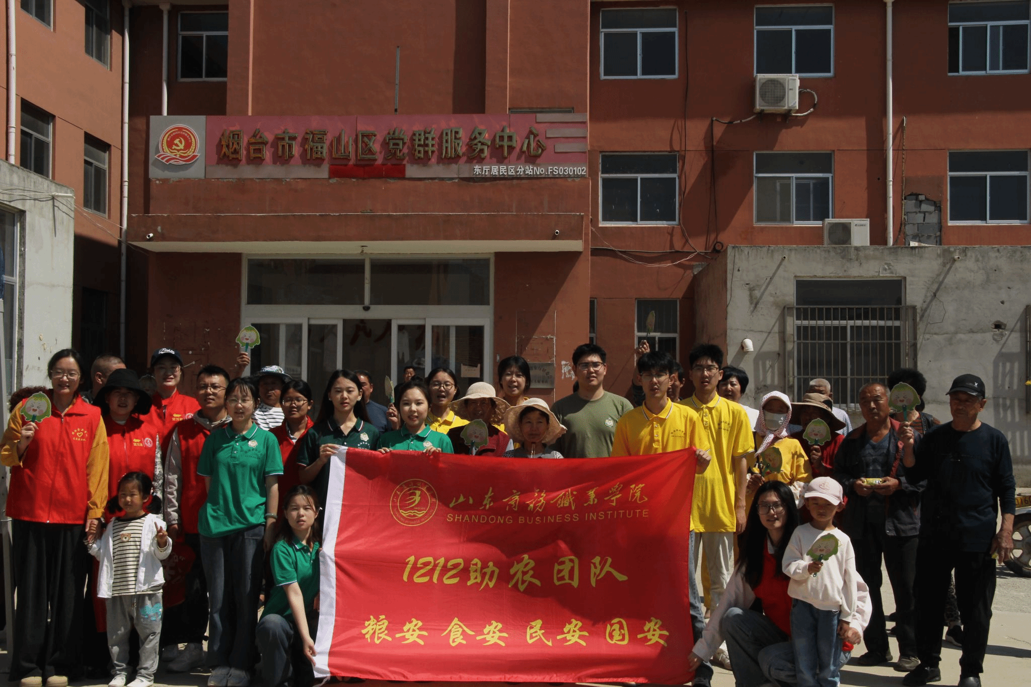 学院党总支组建“党建助农先锋队”,深入烟台市福山区西厅村、东厅村,开展“创新助农・健康利农・爱心惠农”乡村振兴社会实践活动。在烟台市福山区西厅村,1212助农师生团队以“粮食安全是‘国之大者’”为主题,通过“粮食的一生”故事化讲解模式,系统解读从种子培育到餐桌消费的全链条安全要点。学生志愿者结合专业知识讲解营养配餐理念,直观展现科学饮食对慢性病防控的辅助作用,针对农村常见饮食误区进行图解式科普,获村民纷纷点赞。村党支部书记动情地说:“大学生们把课堂搬到田间,用科技帮我们端牢‘饭碗’,这才是真正的‘把论文写在祖国大地上’!”