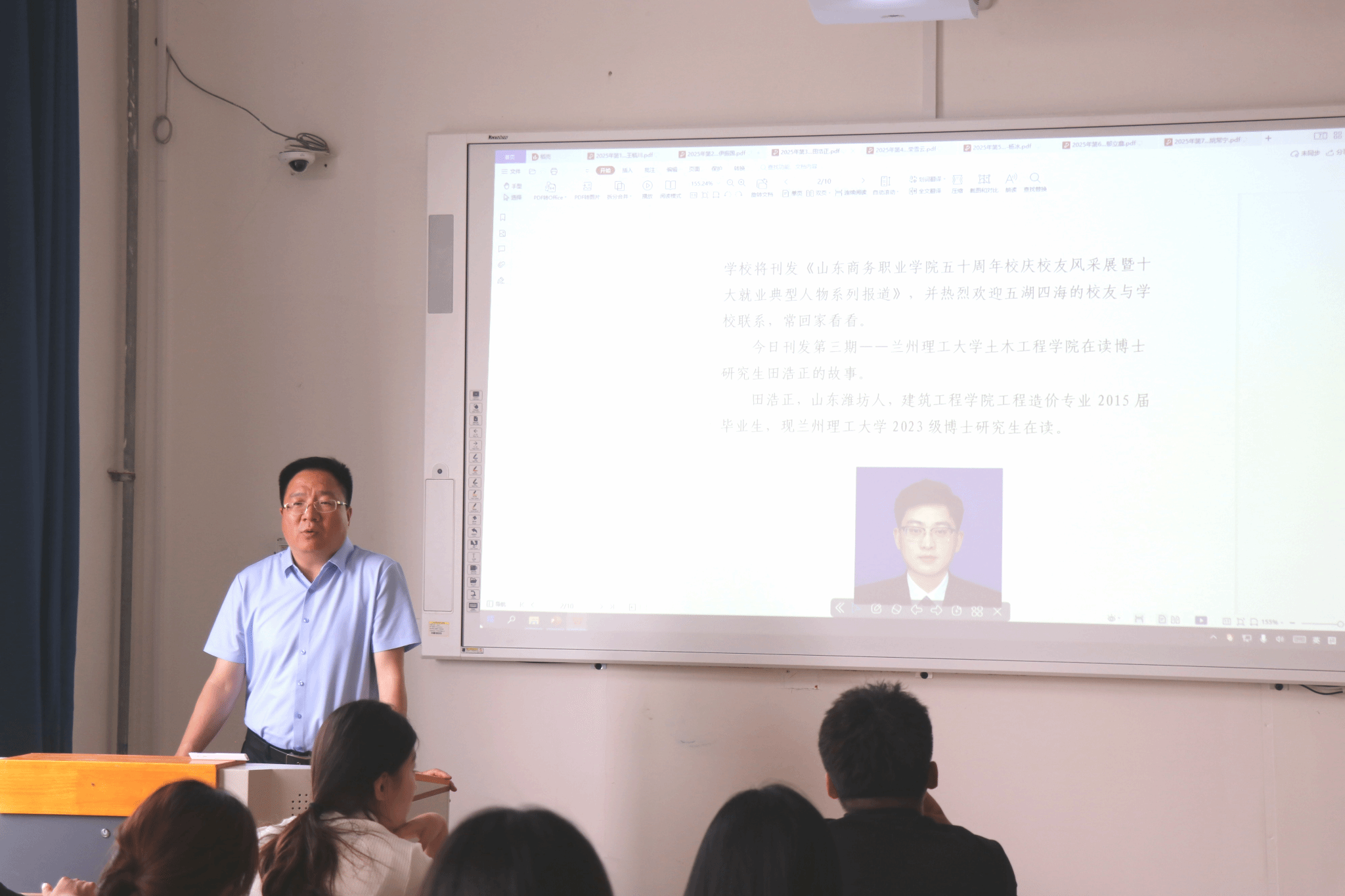 课上,张越重点结合学院五十周年校庆校友风采展暨十大就业典型人物系列报道,展示了学院优秀校友扎根基层、服务国家的先进事迹。他们以卓越的专业能力和崇高的职业精神,成为新时代奋斗者的典范。