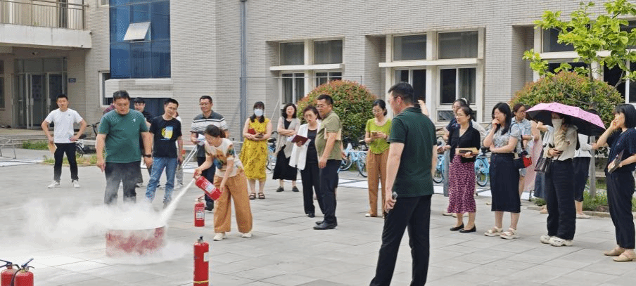 为增强培训实效,活动安排实践演练环节。当天下午5时,随着模拟警报拉响,火情逃生演练正式启动,学院全体教职工按照预设疏散路线有序撤离。参训人员撤离至集合点后,现场学习灭火器使用方法,并针对“逃生姿势规范性”“灭火器取用时机”等细节提出改进建议。随后,参训人员分组进行灭火器、消火栓实操演练,在专业指导下完成“提、拔、握、压”灭火器操作流程及消火栓水带连接实战,直观掌握初期火灾扑救技能。