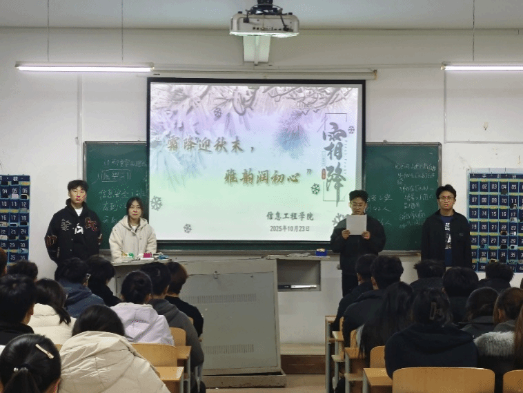 本次活动以霜降节气为纽带,将传统文化传承与理想信念教育有机融合,是信息工程学院推动党建与育人工作深度融合的生动实践。既丰富了学生的课余文化生活,也增强了基层党组织的凝聚力与引领力,为学院党建工作与思政教育的深度融合注入了鲜活力量。(通讯员:巩斌 撰稿:王正臣 审核:栾岭雪 樊佳珍 值班审核:李国翠)