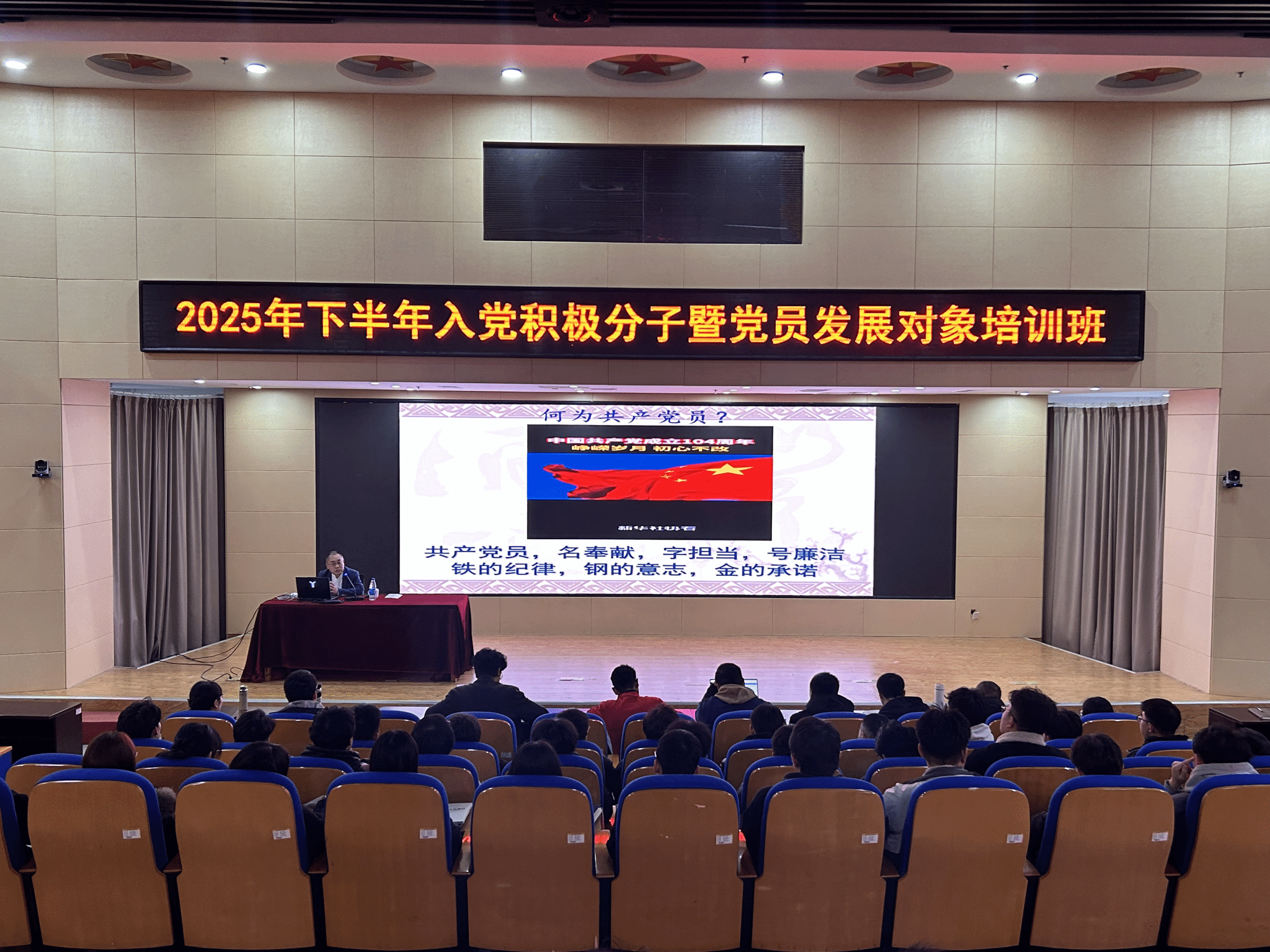 11月3日,在2025年下半年入党积极分子暨党员发展对象培训班中,粮油食品学院党总支书记赵海成以“以实际行动争做一名合格党员”为主题,为大家带来了一堂内容丰富、案例生动、启迪深刻的专题党课。