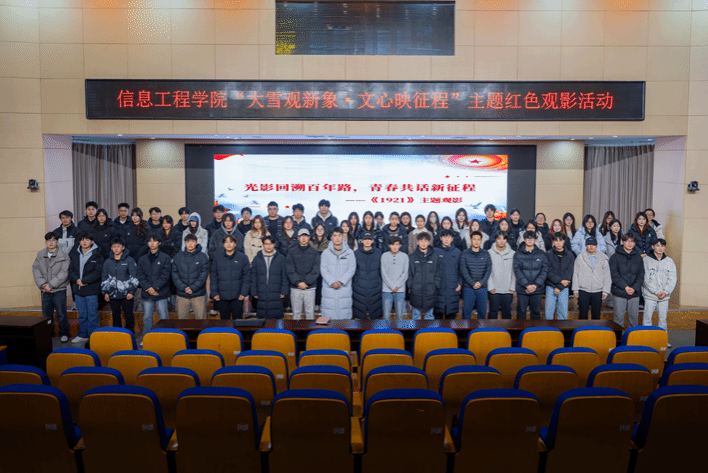 为深入学习贯彻党的二十大精神,传承红色基因,厚植青年学子的爱国情怀与责任担当,恰逢大雪节气,12月7日晚,信息工程学院学生党支部在党性教育基地组织开展“大雪观新象・文心映征程”红色主题观影活动。全体24级入党积极分子及各团支部学生代表齐聚一堂,共同观看红色经典影片《1921》,在光影叙事中重温峥嵘岁月,汲取奋进力量。