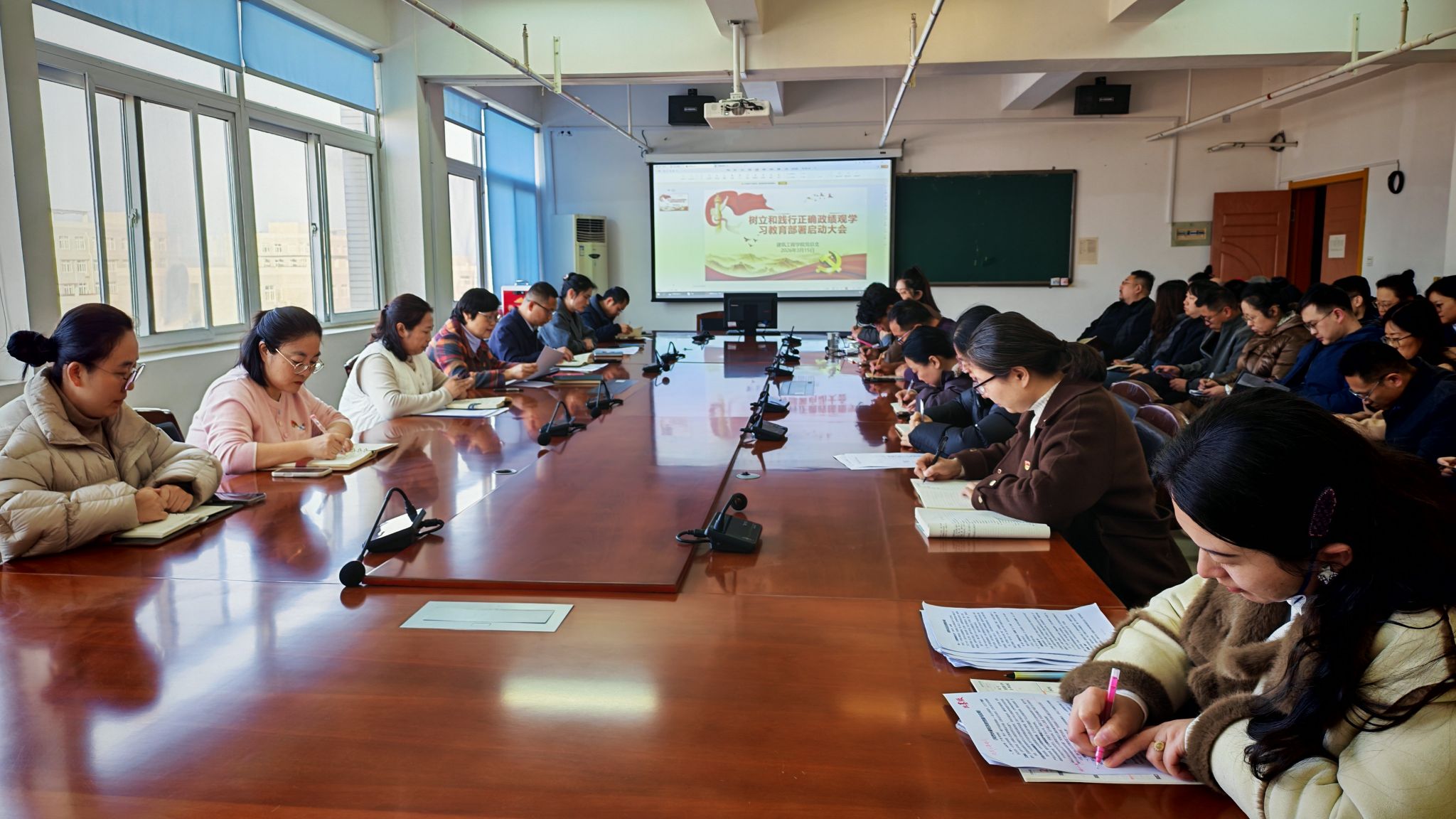随后,建筑工程学院党总支召开全体党员大会,正式启动树立和践行正确政绩观学习教育工作。党总支书记王绍燕作动员部署讲话,结合建筑行业发展实际和学院工作特点,深入阐释了正确政绩观的实践内涵与时代要求。