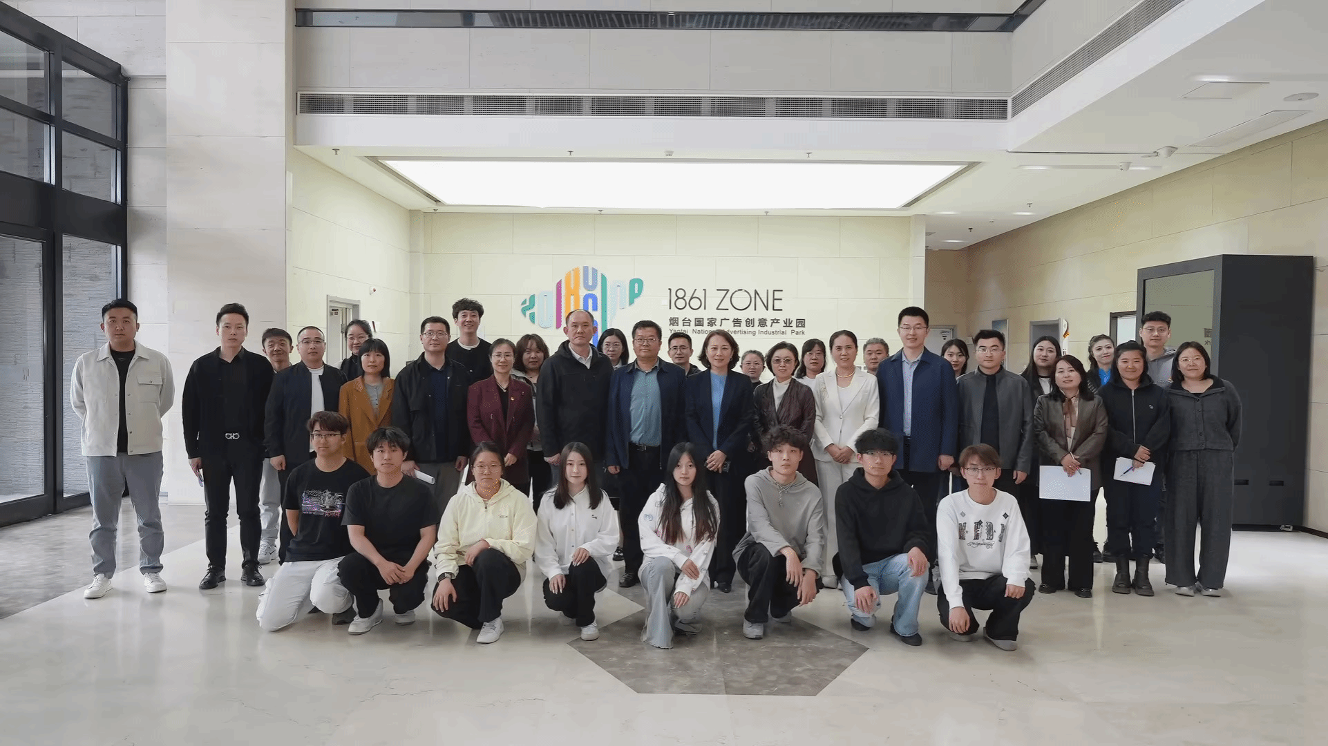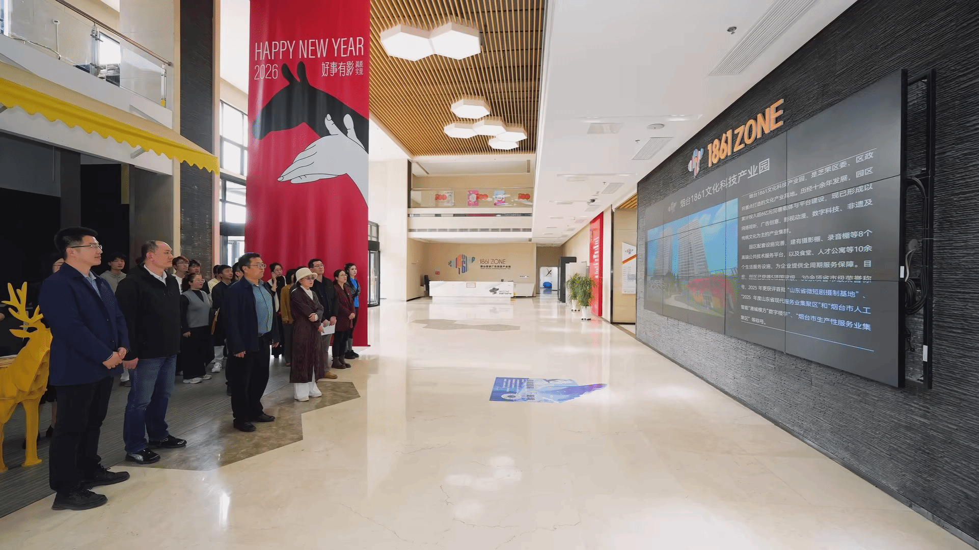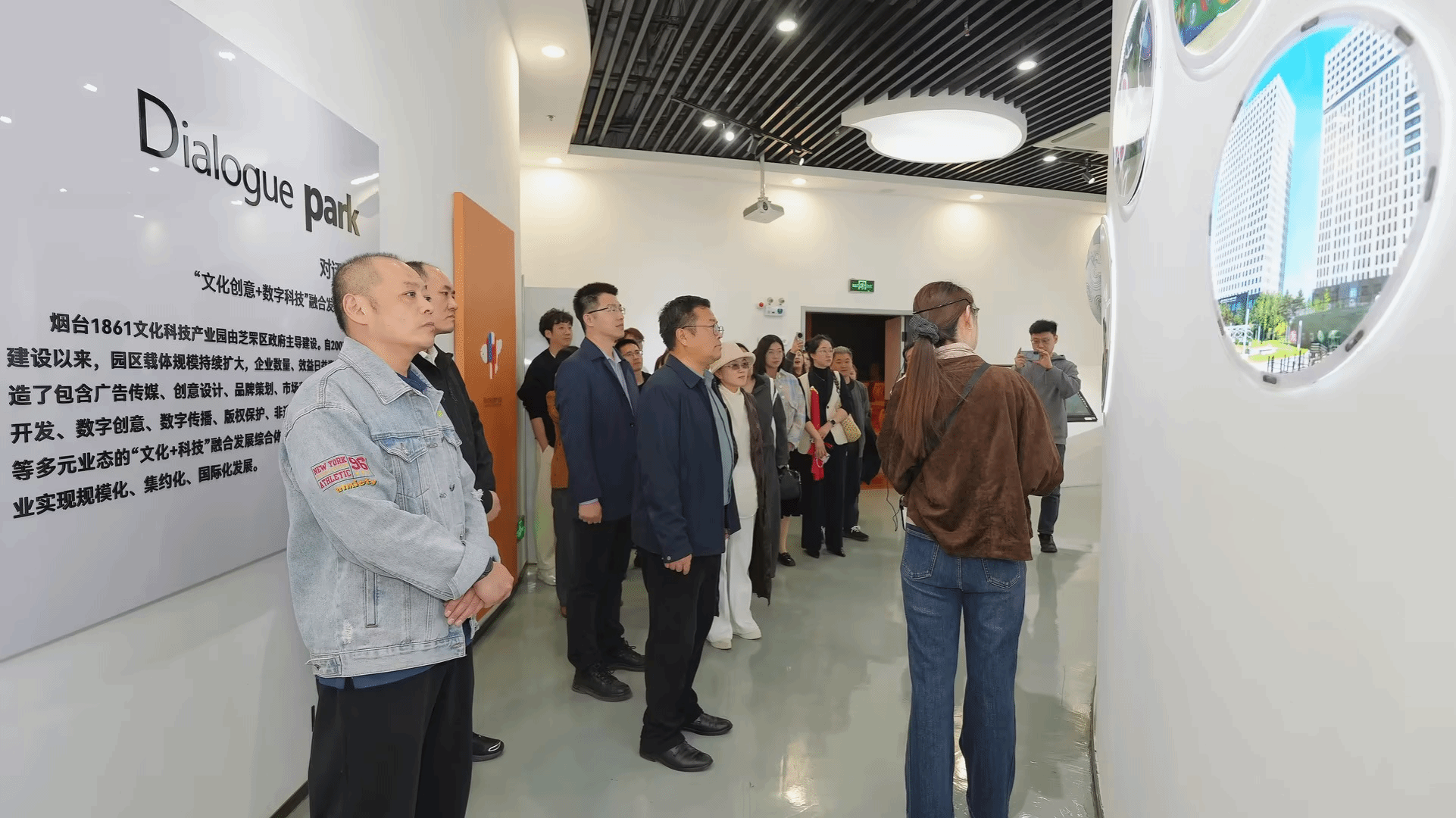 活动伊始,考察团一行实地走访园区,先后观看园区宣传片、参观“红营舫”党群活动中心及公共服务平台。在现场讲解与沉浸式观摩中,学院师生全面了解了烟台1861文化创意产业园“文化创意+数字科技”的融合发展定位、多元产业业态布局、党建工作特色以及园区文创企业的发展成果与创新实践,近距离感受了区域文创产业的发展活力与行业前沿趋势。