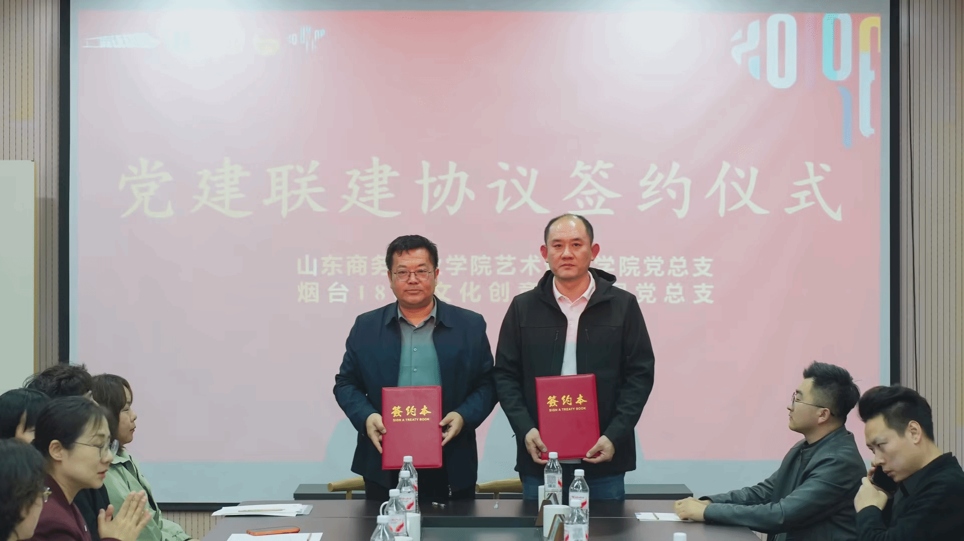 为深入贯彻落实新时代党建工作要求,以党建为纽带深化校企合作、推进产教融合、实现协同育人,4月16日,艺术设计学院党总支书记赵永刚,副书记、院长万礼等学院领导带领学院党员教师、学生党员代表赴烟台1861文化创意产业园开展党建联建暨校企合作签约活动。园区党总支书记孙杰、总负责人王涛及多家烟台头部文化创意类企业负责人热情接待并参与活动。