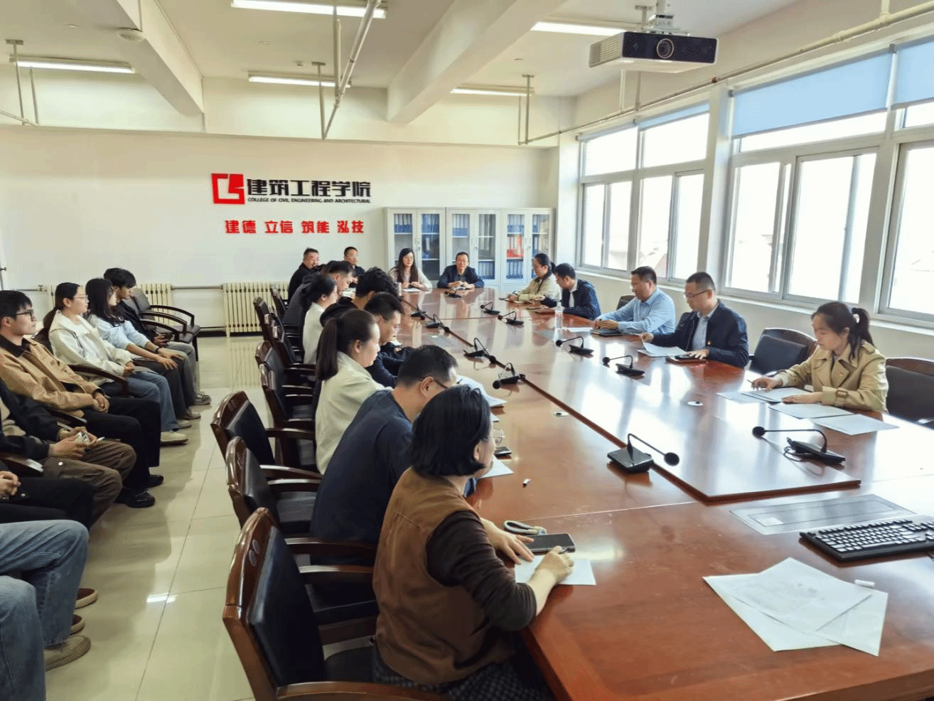 近日,建筑工程学院教师党支部在图书馆512会议室召开推荐入党积极分子党员和群众代表会议,严格规范党员发展程序,凝聚育人合力。学校党委副书记张越出席会议,党支部书记朱峰主持,支部全体党员、群众代表参会。